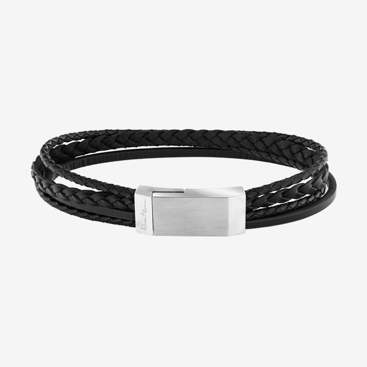 Pulseira em tiras de pele com chapa de inox gravada Dom Afonso