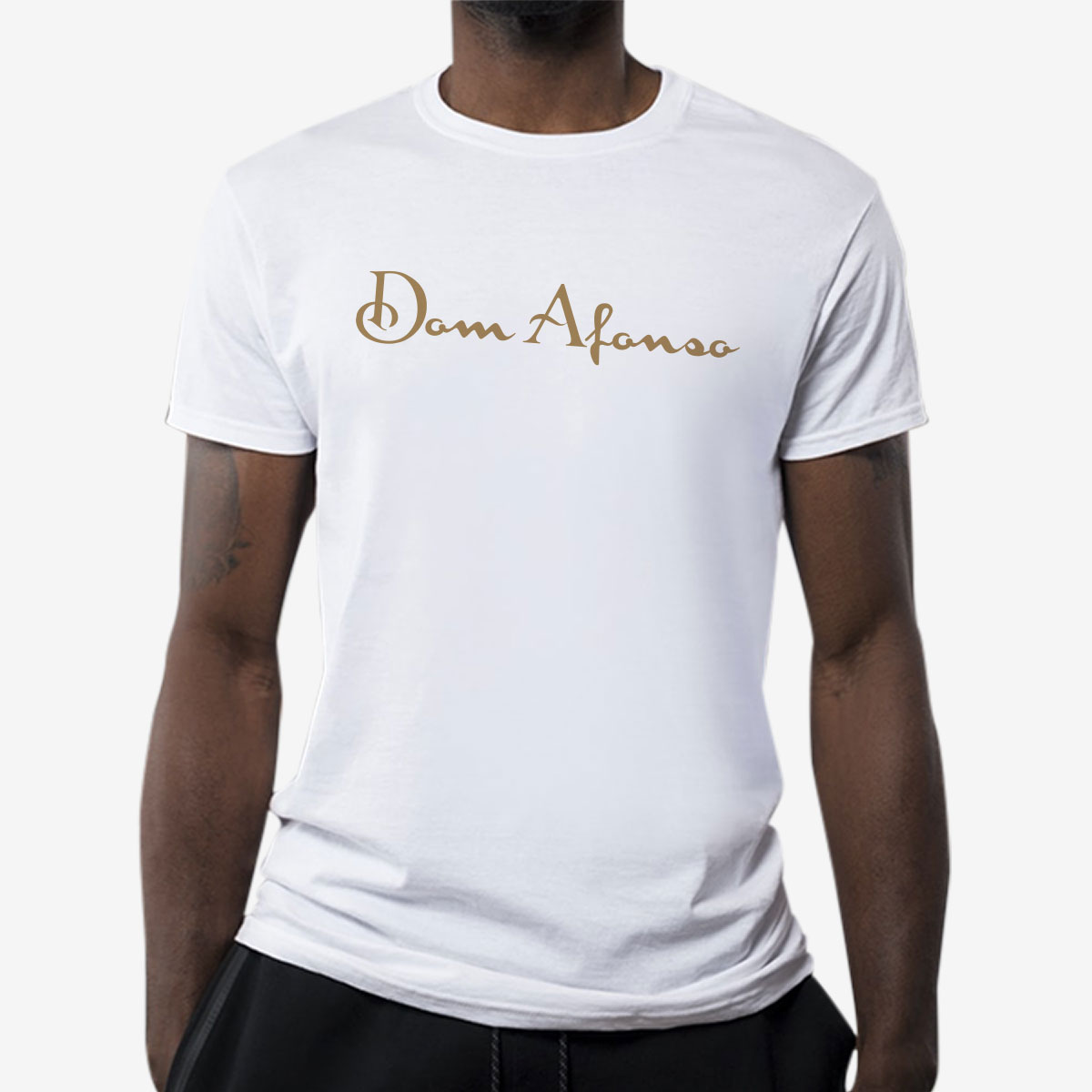 T-shirt de algodão 180Gr, branca com logótipo Dom Afonso a dourado